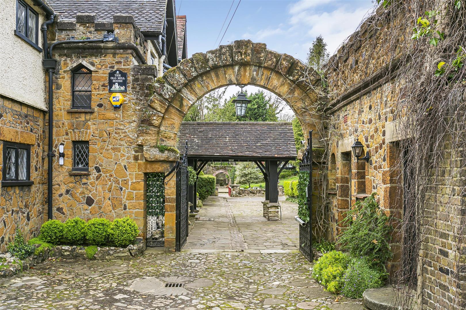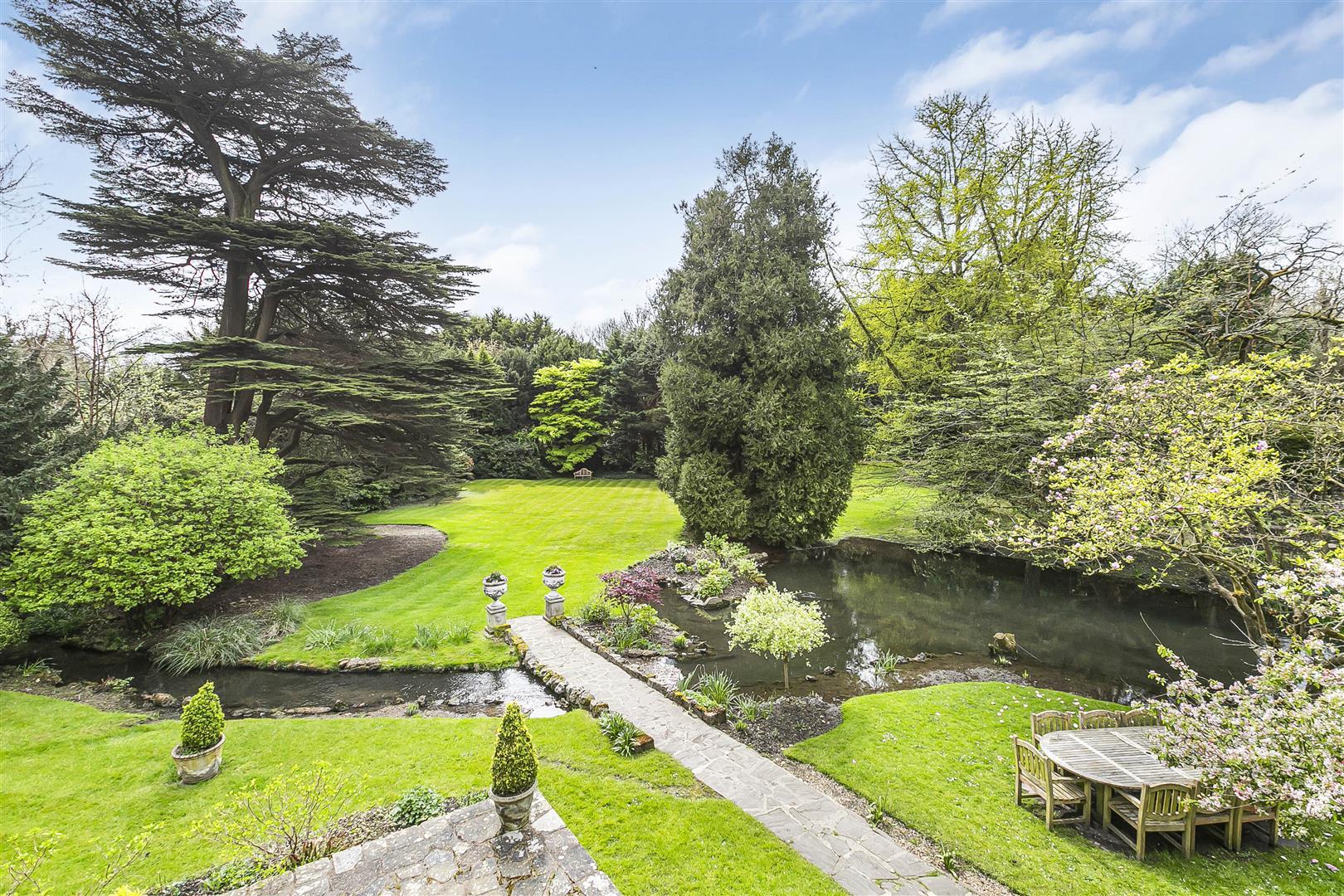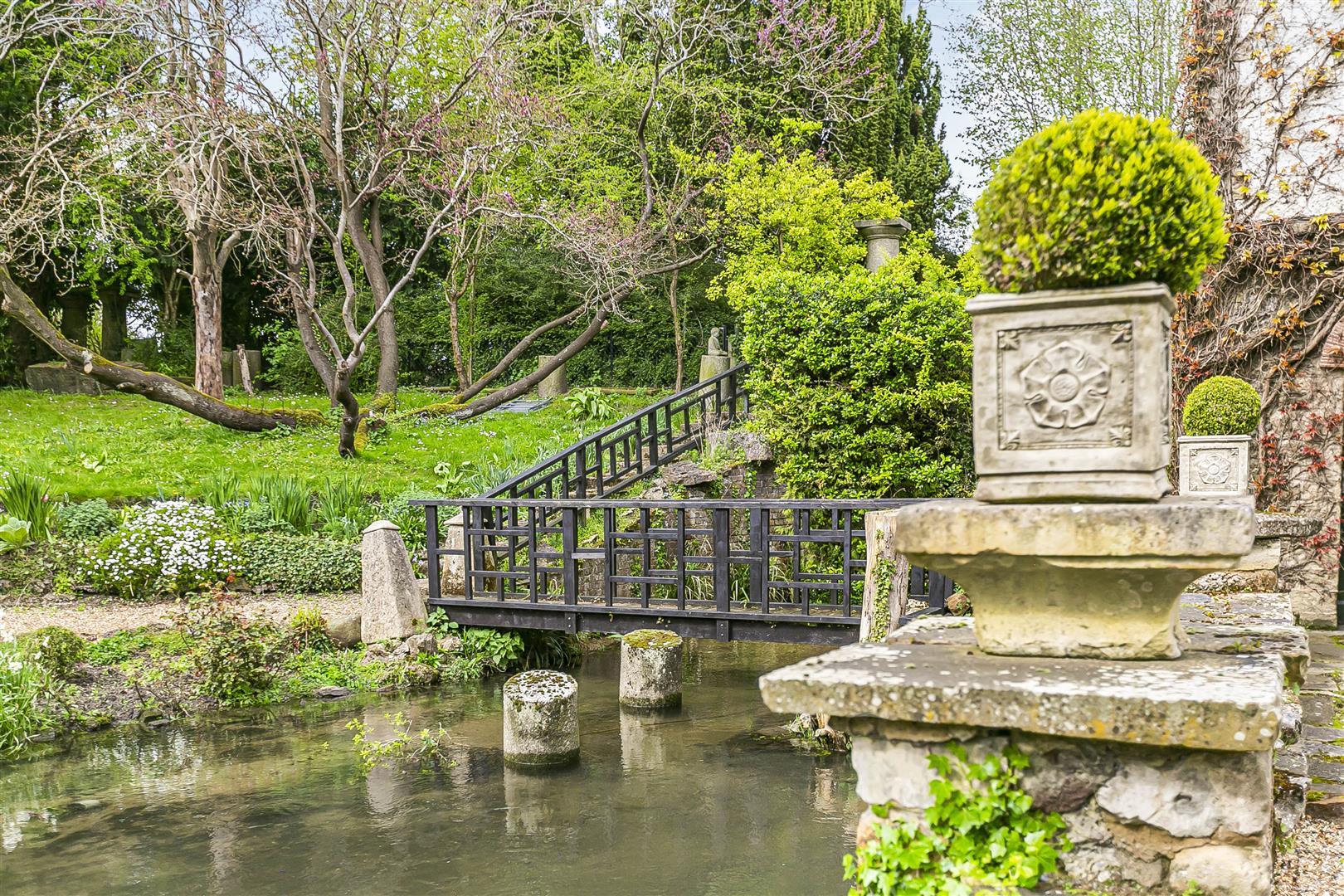 A rare chance to own one of the country’s few remaining mill houses. Parts of The Old Mill House are over 200 years old, with the site believed to date back to Roman times. Accessed via wrought iron gates beside a castellated gatehouse and brick remnants of the old mill—including two mill wheels—the home opens to a large paved courtyard. Owned and carefully improved over 30 years, the house retains abundant period charm across three floors. Many rooms are double or triple aspect with window seats, and the reception spaces feature French doors to the garden and terrace. The drawing room offers a baronial feel with oak panelling, beams, and a carved stone fireplace. A kitchen with Aga opens onto a terrace overlooking the River Gade. Upstairs, the master suite boasts a balcony and fireplace, while the top floor offers ideal guest or au pair space. A detached, refurbished cottage includes two bedrooms, kitchen, bathroom, and living room, with a ground floor garage and parking for three cars.