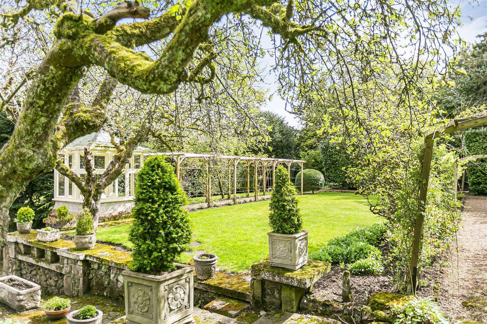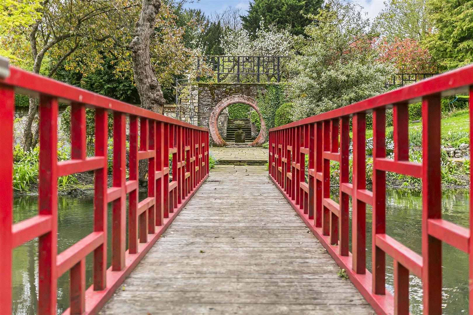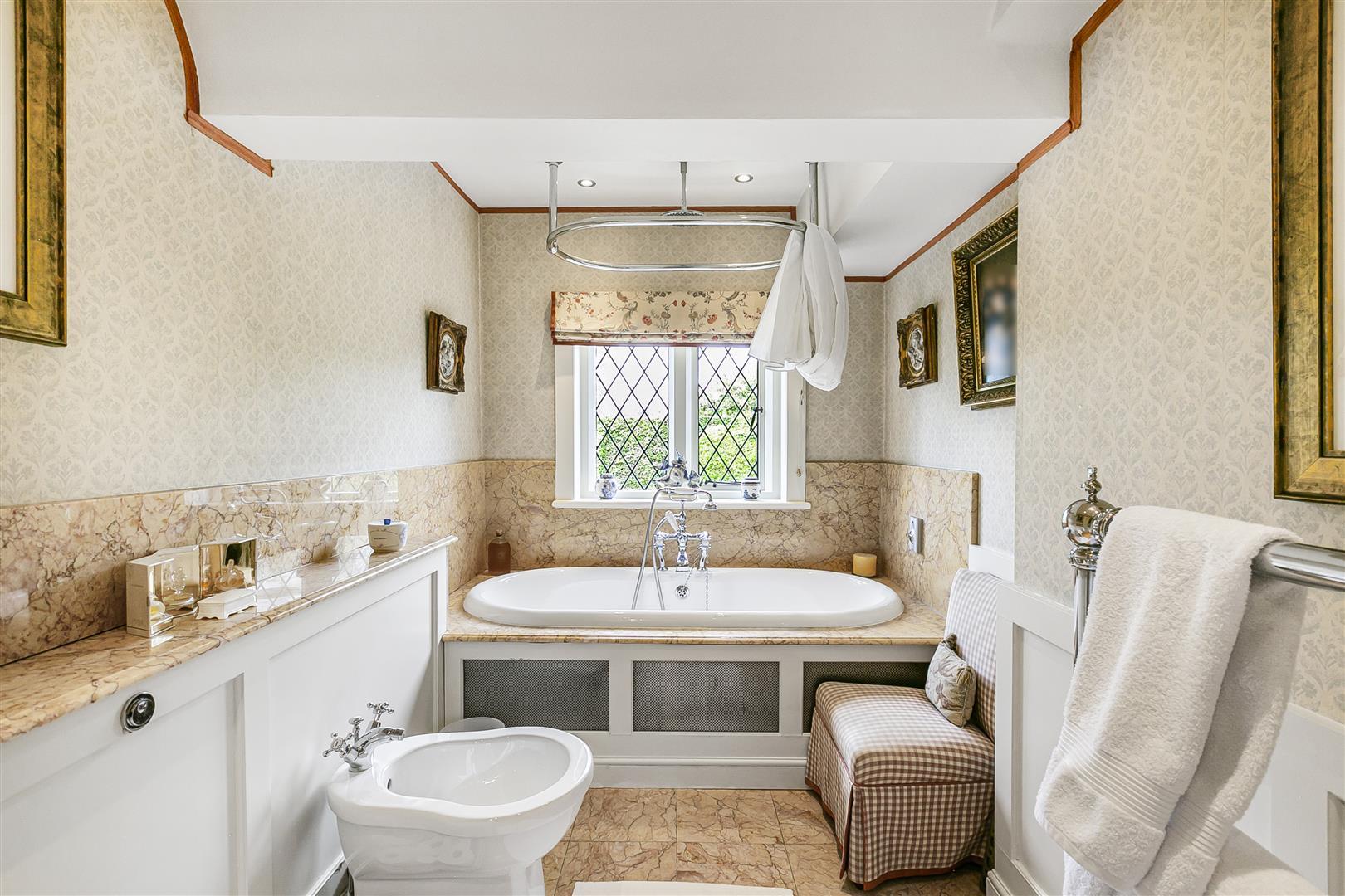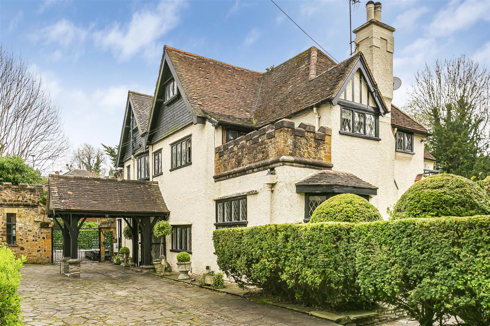 A rare chance to own one of the country’s few remaining mill houses. Parts of The Old Mill House are over 200 years old, with the site believed to date back to Roman times. Accessed via wrought iron gates beside a castellated gatehouse and brick remnants of the old mill—including two mill wheels—the home opens to a large paved courtyard. Owned and carefully improved over 30 years, the house retains abundant period charm across three floors. Many rooms are double or triple aspect with window seats, and the reception spaces feature French doors to the garden and terrace. The drawing room offers a baronial feel with oak panelling, beams, and a carved stone fireplace. A kitchen with Aga opens onto a terrace overlooking the River Gade. Upstairs, the master suite boasts a balcony and fireplace, while the top floor offers ideal guest or au pair space. A detached, refurbished cottage includes two bedrooms, kitchen, bathroom, and living room, with a ground floor garage and parking for three cars.