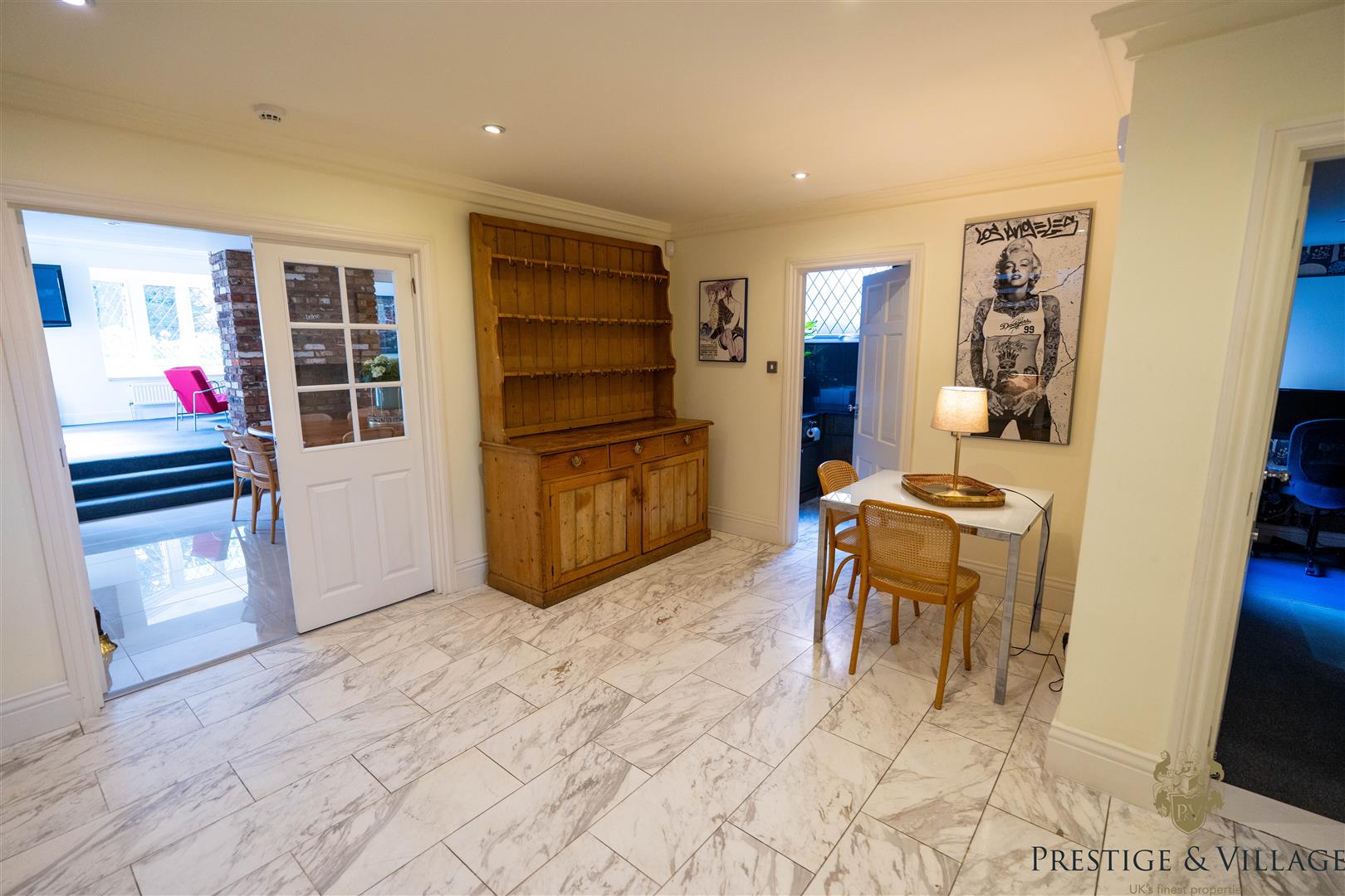 On the ground floor, a grand entrance hall leads to a spacious living room, ideal for relaxing or entertaining. There’s also a second reception/family room, a dedicated home office, and a bright kitchen/breakfast room with an adjoining dining area. A separate utility room and guest WC add convenience.